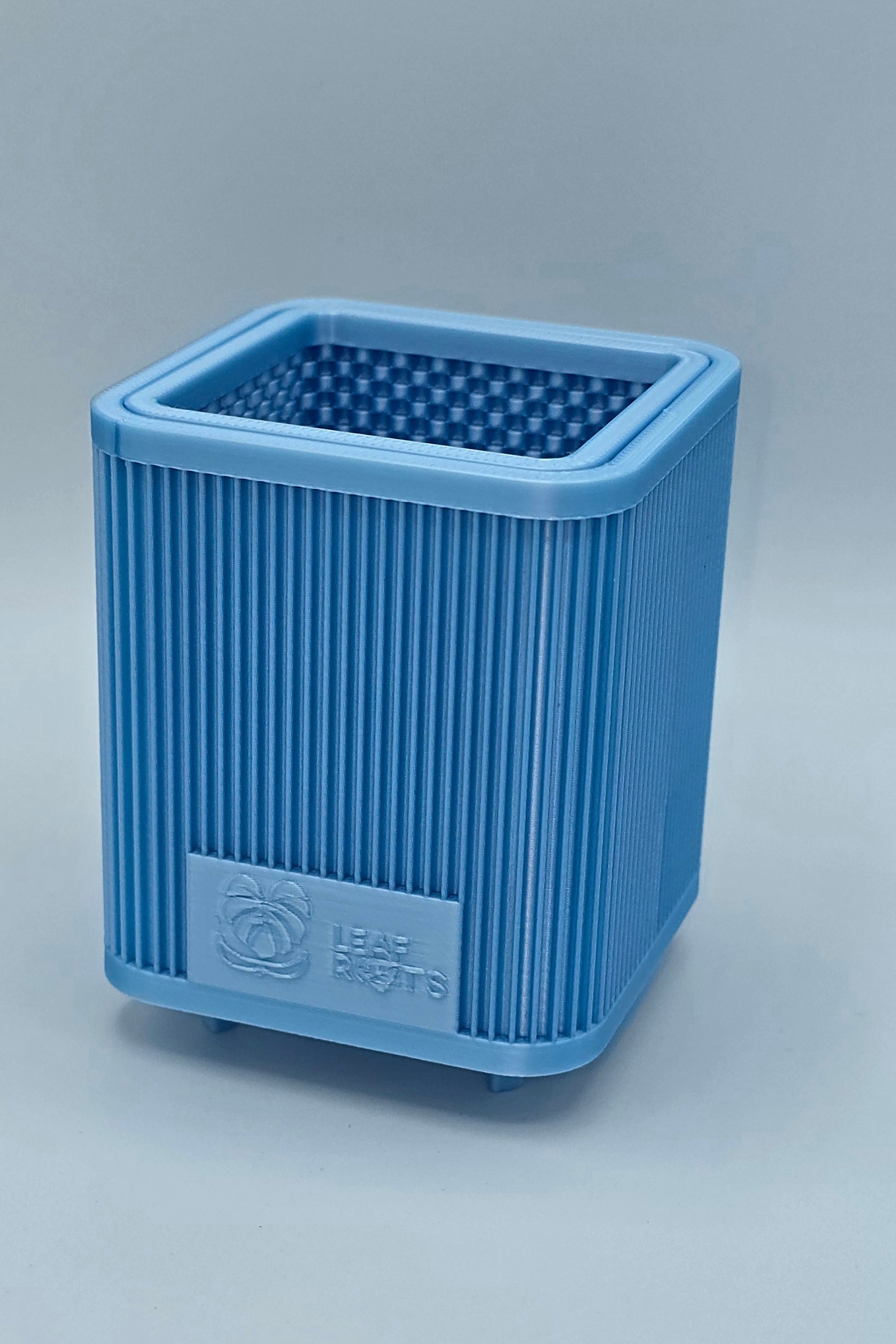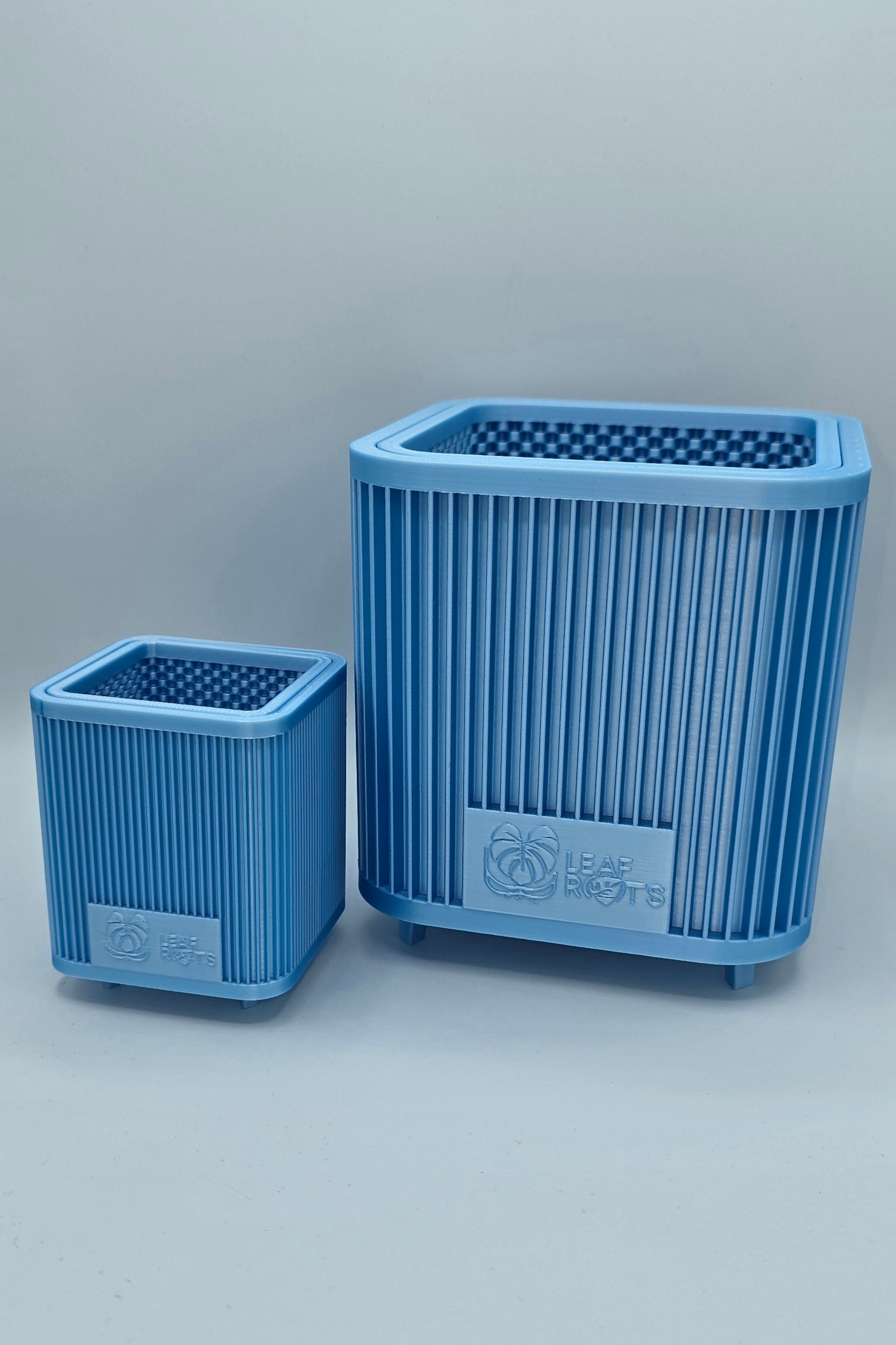 Der AirRoot Selbstbewässerungstopf von Leaf and Roots verbindet modernes Design mit funktionaler Technik. Jeder Topf entsteht im präzisen dreidimensionalen Druck und besitzt ein belüftetes Innenleben mit hunderten feinen Mikroöffnungen. Diese Struktur hält das Substrat locker und versorgt die Wurzeln kontinuierlich mit Sauerstoff.