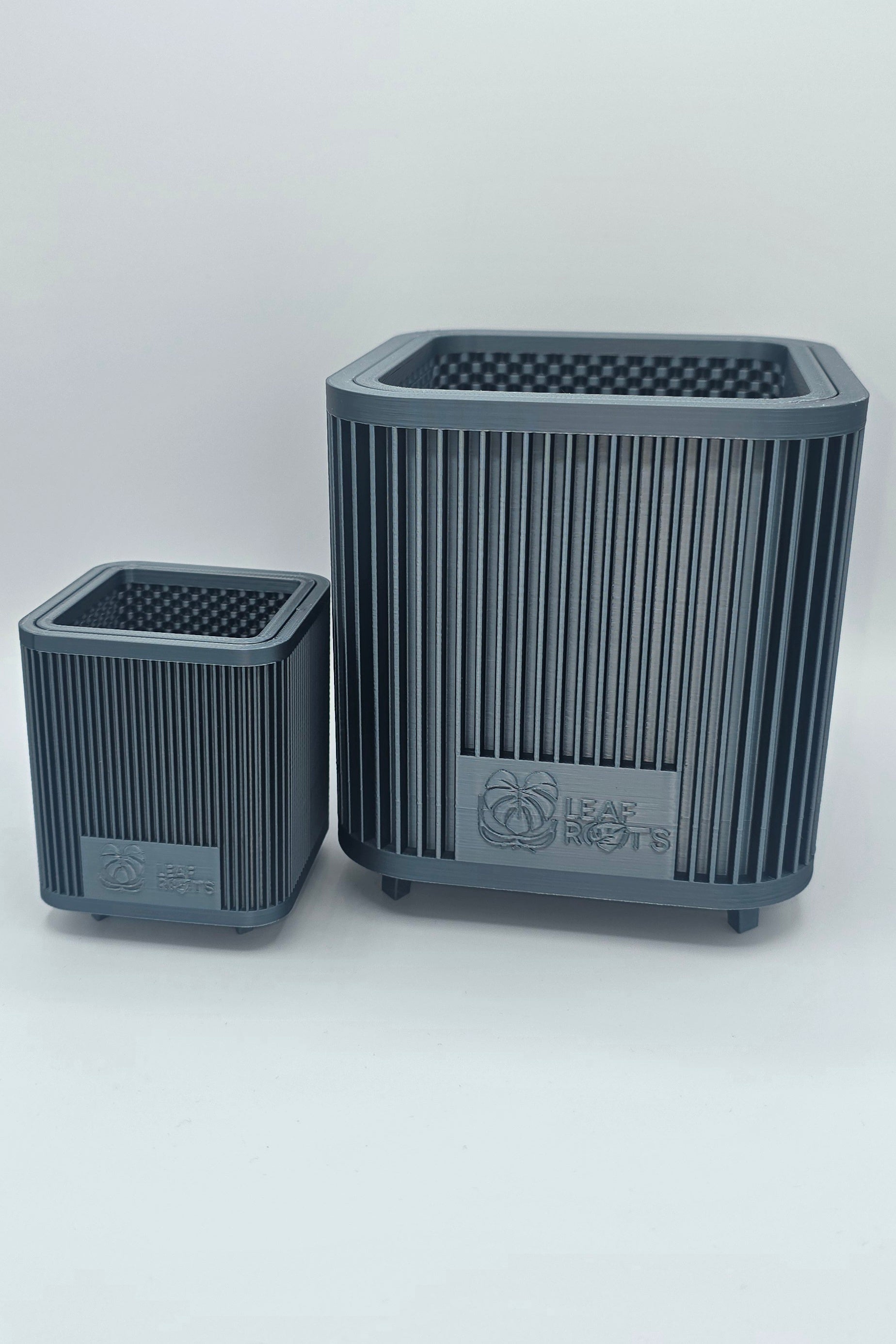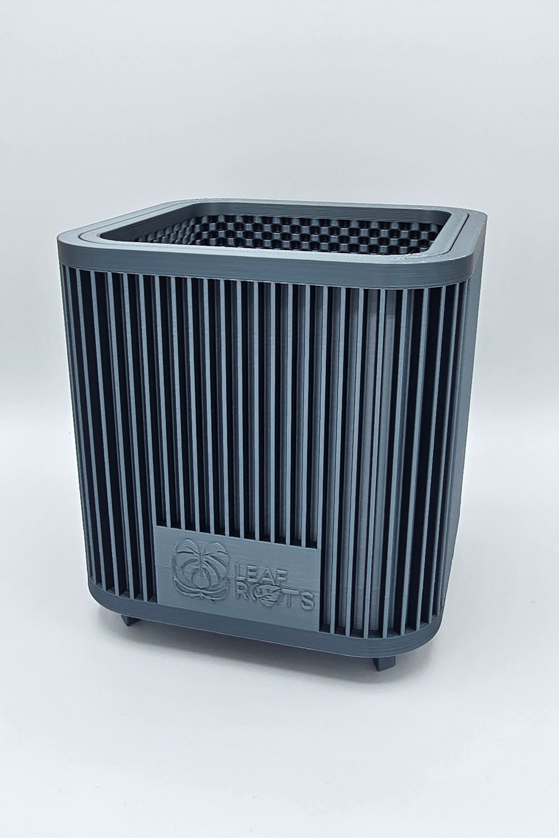 Der AirRoot Selbstbewässerungstopf von Leaf and Roots verbindet modernes Design mit funktionaler Technik. Jeder Topf entsteht im präzisen dreidimensionalen Druck und besitzt ein belüftetes Innenleben mit hunderten feinen Mikroöffnungen. Diese Struktur hält das Substrat locker und versorgt die Wurzeln kontinuierlich mit Sauerstoff.