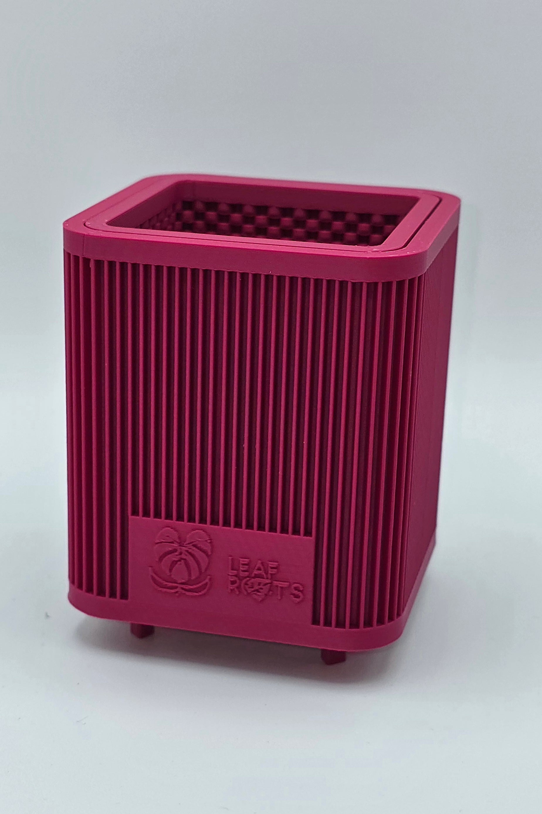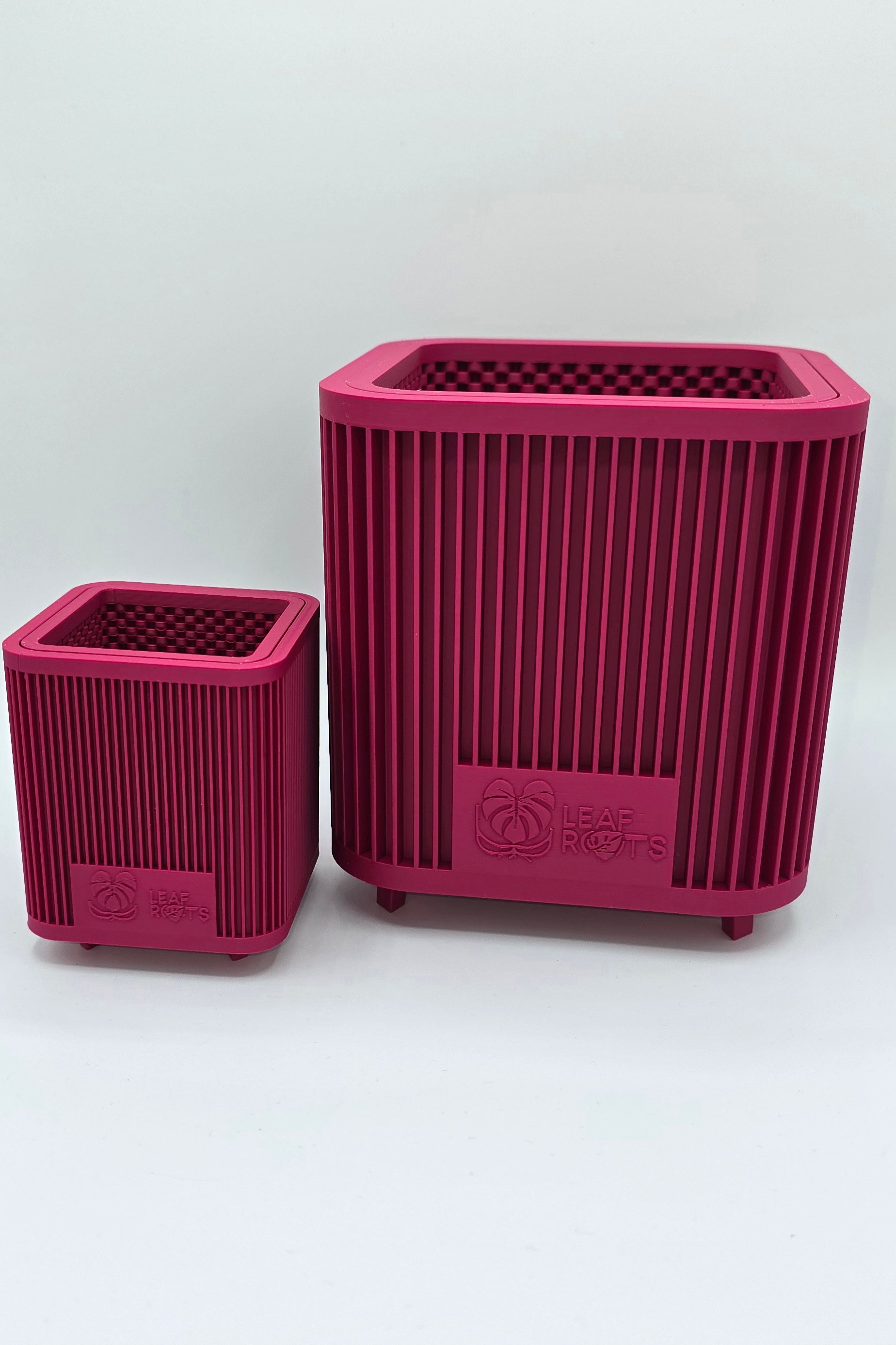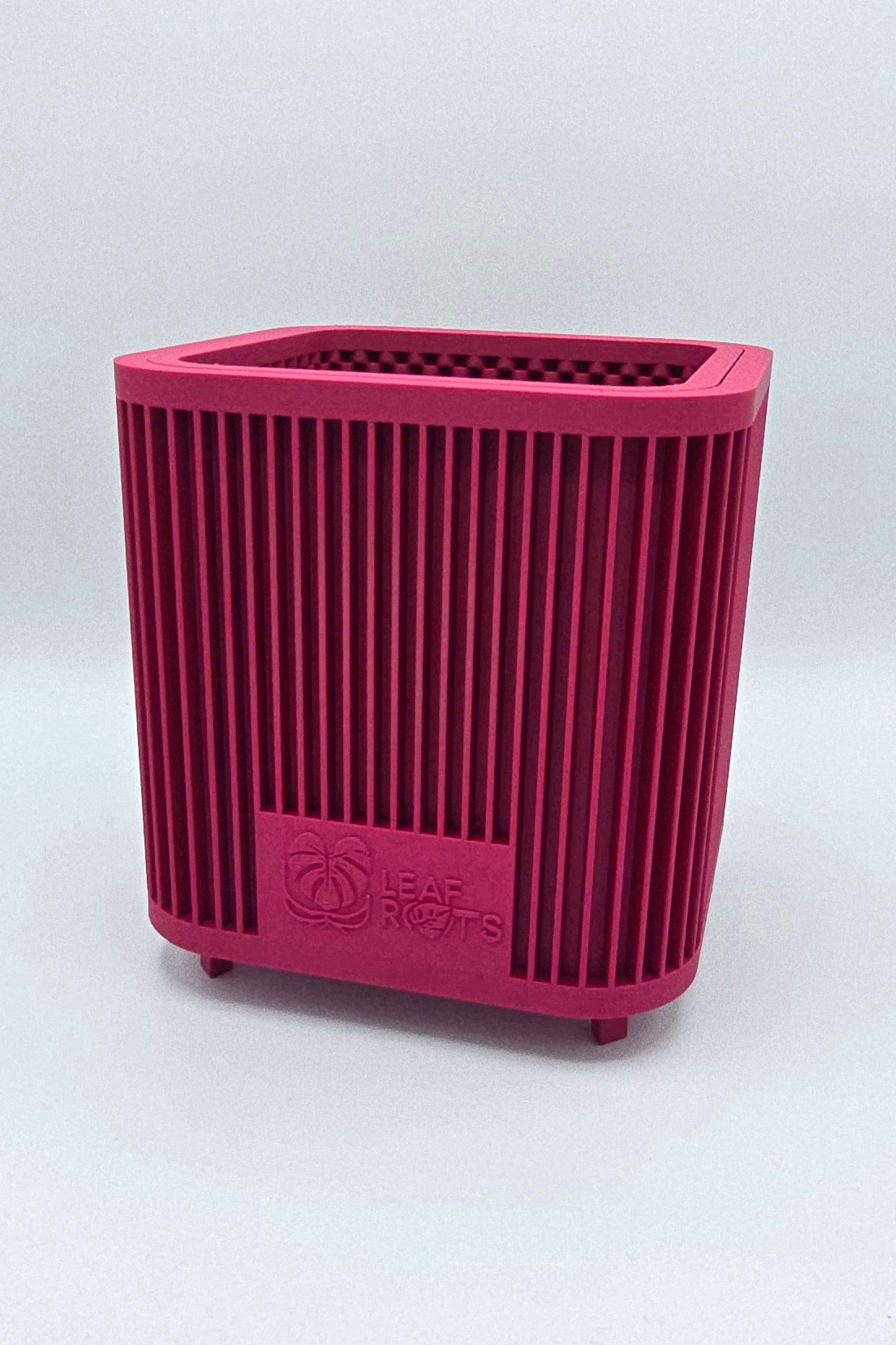 Der AirRoot Selbstbewässerungstopf von Leaf and Roots verbindet modernes Design mit funktionaler Technik. Jeder Topf entsteht im präzisen dreidimensionalen Druck und besitzt ein belüftetes Innenleben mit hunderten feinen Mikroöffnungen. Diese Struktur hält das Substrat locker und versorgt die Wurzeln kontinuierlich mit Sauerstoff.